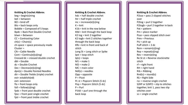 Knitting Abbreviation Dictionary Blue Sky Fibers