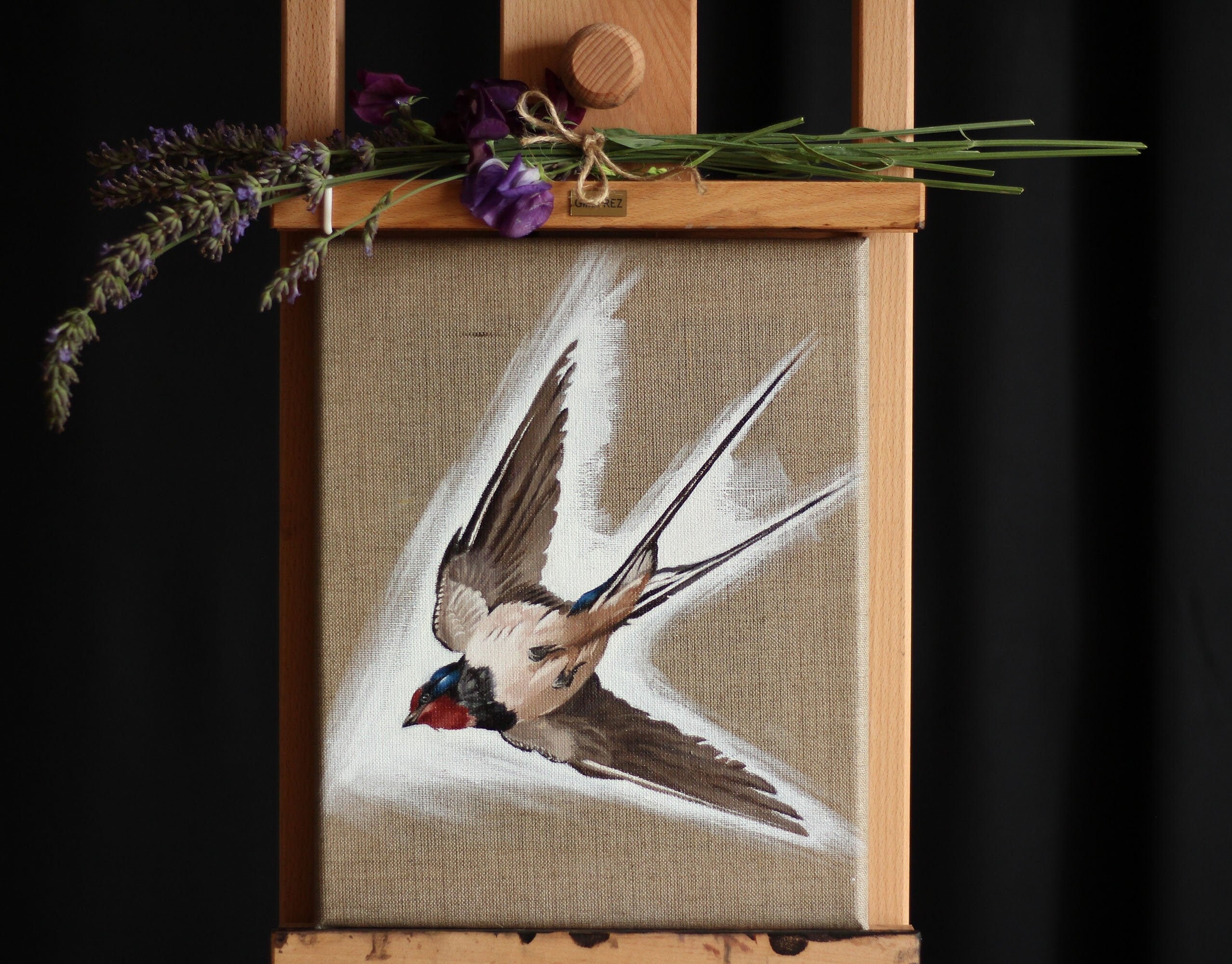 Swallow Original Oil Paintingwall Arttattoo Artswallow Etsy Australia